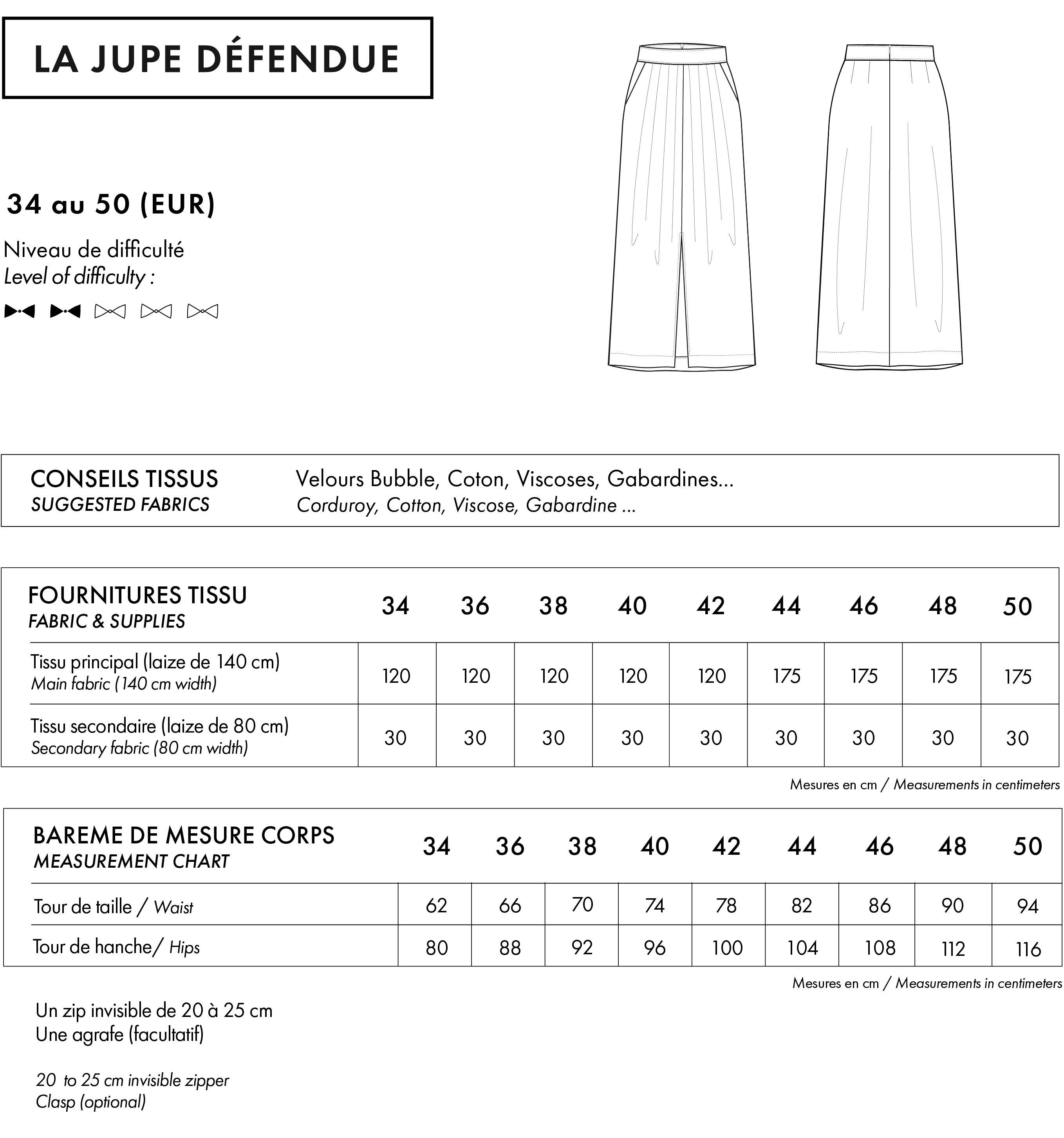 ATELIER BRUNETTE • LA Jupe Defendue Sewing Pattern • New