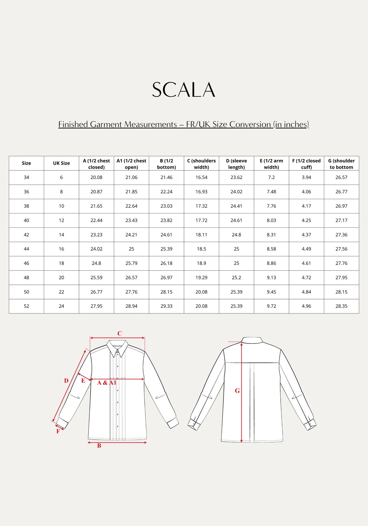 Why we recommend this pattern • The Scala Shirt is a beautifully balanced design that combines classic tailoring with modern ease. Its thoughtful details, from the sharp collar to the elegant pleats, create a polished result, while the relaxed cut keeps it wearable for everyday. It’s a satisfying sew for anyone looking to add a refined, versatile shirt to their handmade wardrobe.