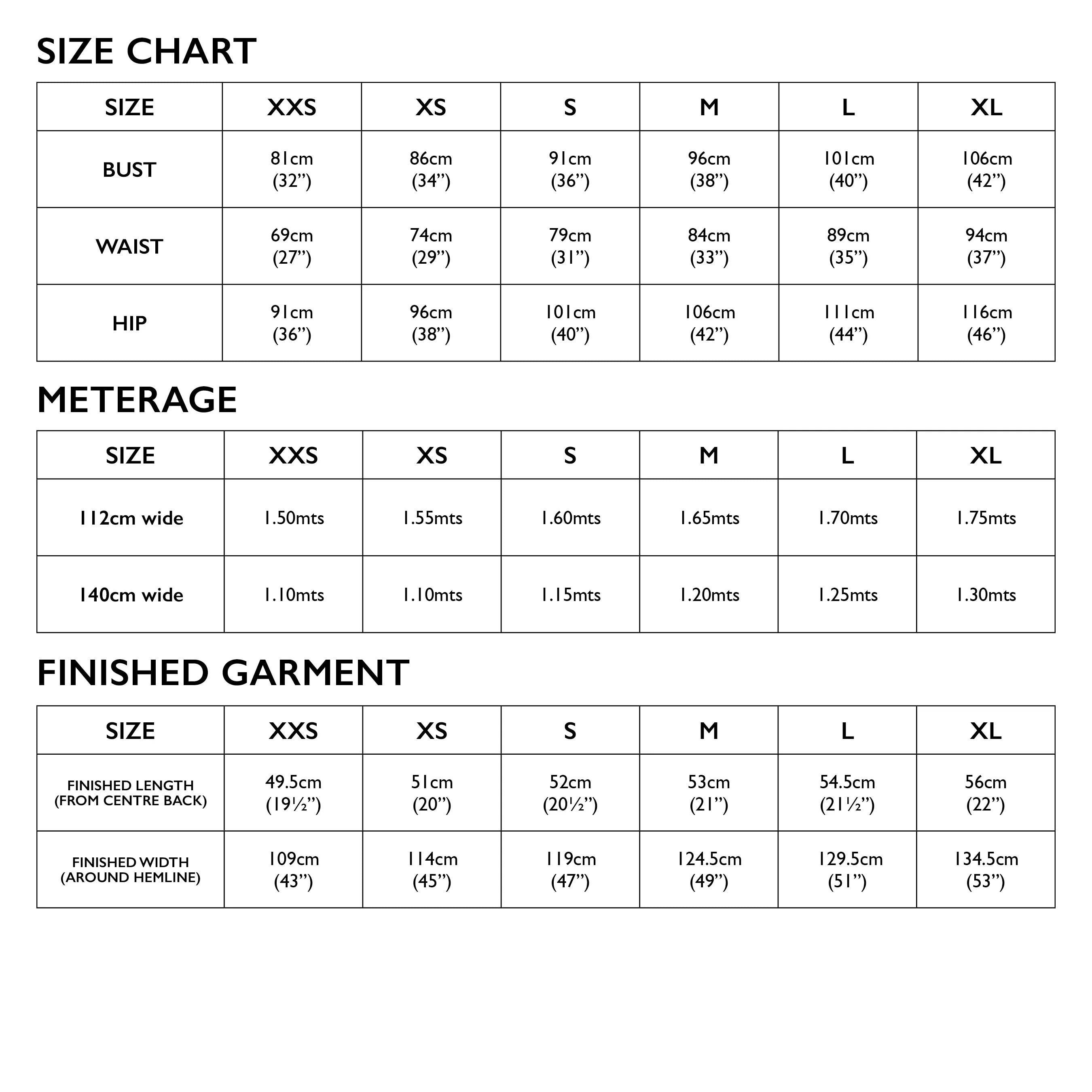 - Sizes XXS–XL