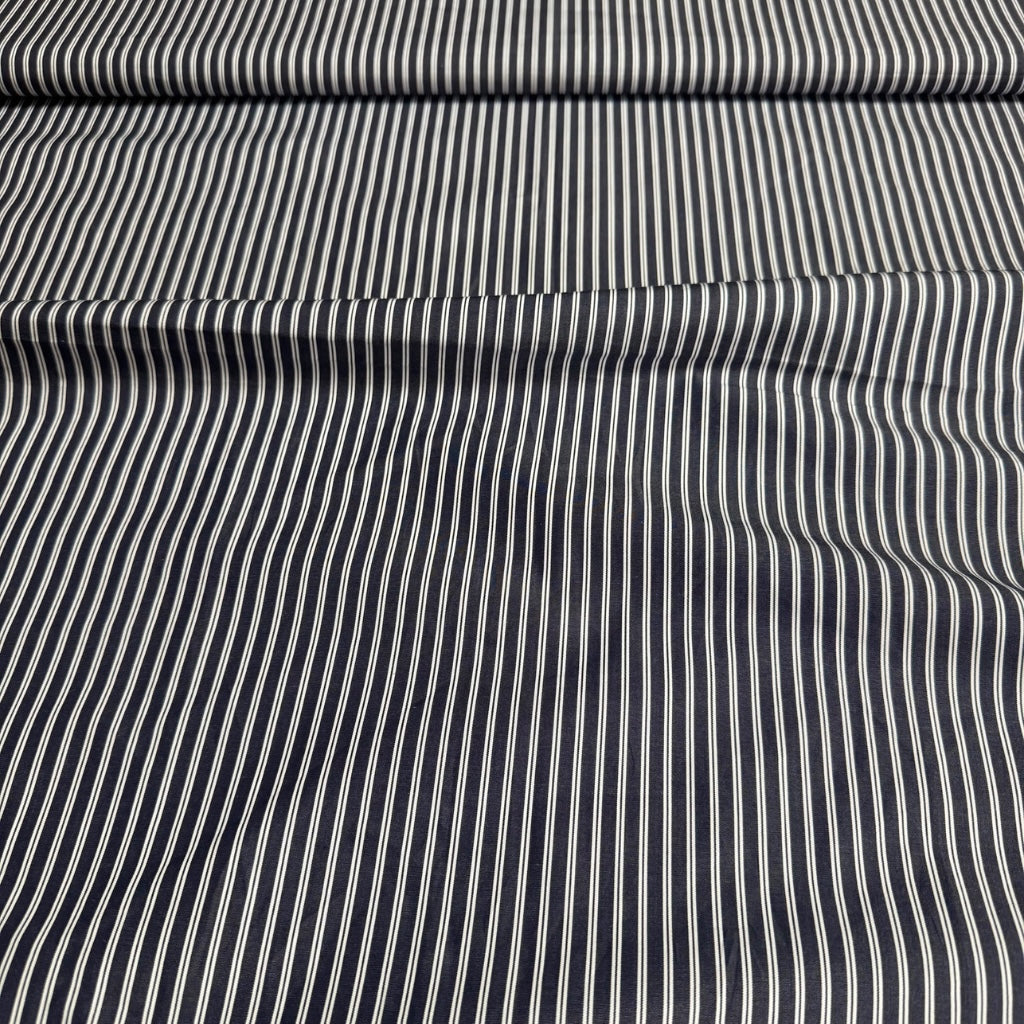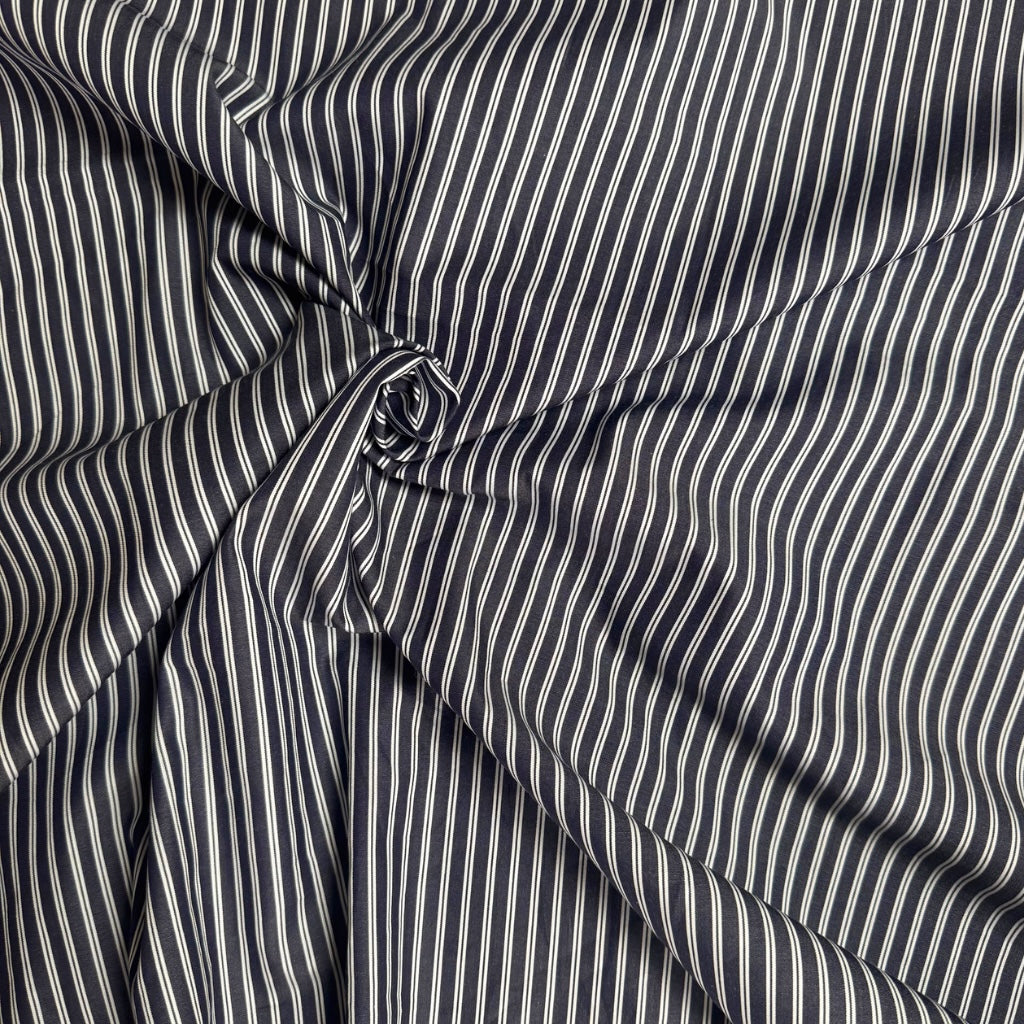 COMO DARK STRIPED COTTON FABRIC • Dark Navy • NEW