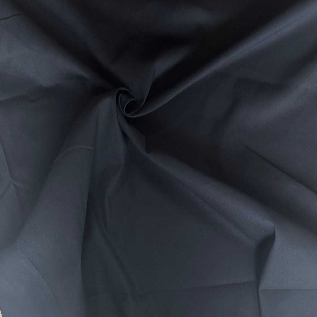 This premium Italian designer deadstock cotton twill fabric in classic black offers a beautiful handfeel and a subtle sheen for an elevated finish. Woven from cotton with a touch of spandex, it provides gentle stretch and comfort, making it ideal for sewing tailored skirts, trousers and structured dresses. A versatile mid-weight fabric, it’s perfect for year-round garment making.
