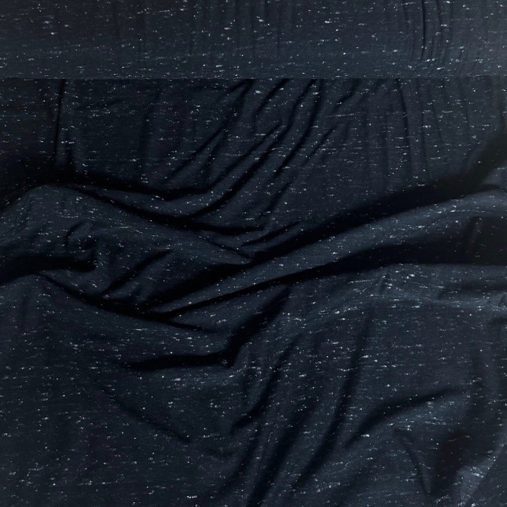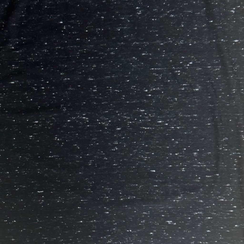 This premium ex-Karen Millen deadstock salt and pepper viscose jersey features subtle grey and white flecks on a classic black base, giving it a softly textured, elevated look. Luxuriously soft with beautiful drape, this designer jersey fabric is crafted from viscose with added spandex for comfort and stretch.