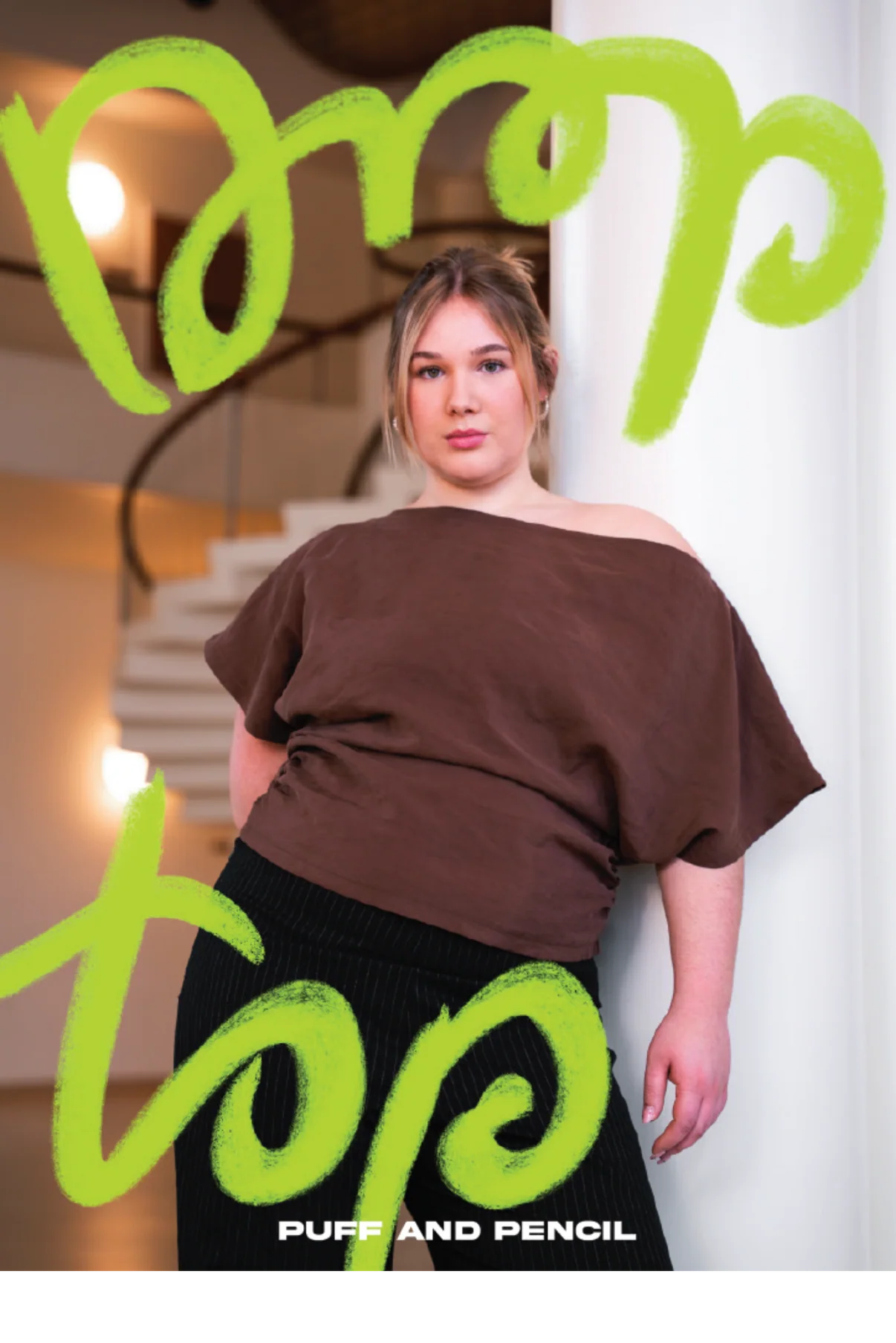 The Drop Top Sewing Pattern by Puff and Pencil is a modern, fitted blouse designed to flatter the waist while offering soft, elegant drape through the bust. With its contemporary silhouette, this is a statement top that feels both refined and wearable.