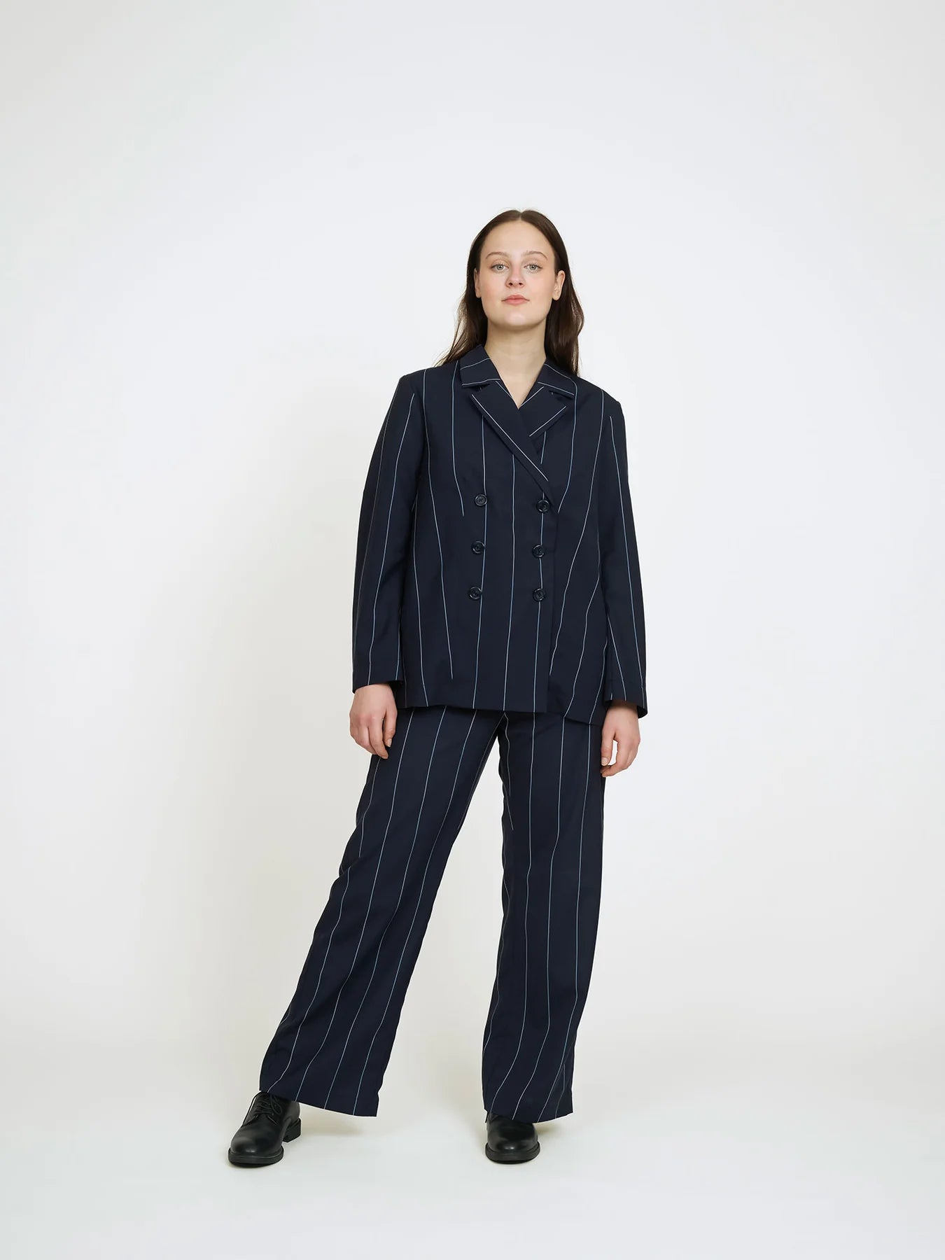 The Double-Breasted Jacket Sewing Pattern by The Assembly Line is a stylish, modern wardrobe essential with a clean, contemporary silhouette. Designed with a straight fit and double-breasted front, it offers simple yet refined construction that’s enjoyable to sew and easy to wear.