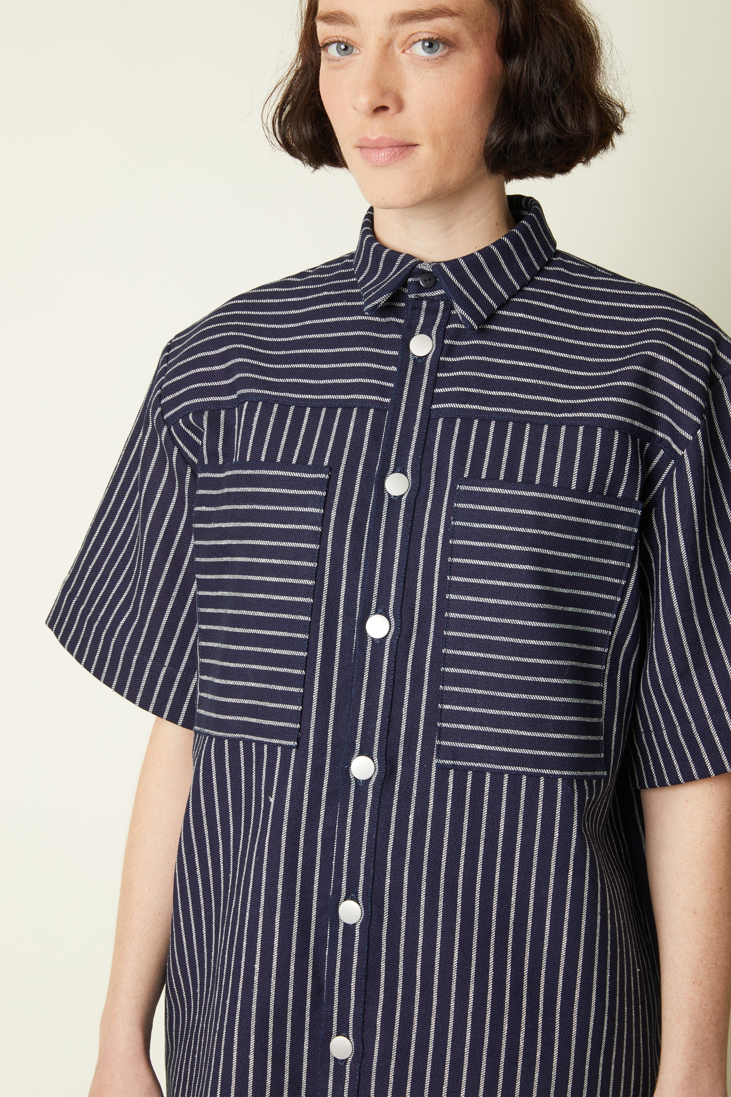 This shirt dress sewing pattern includes a neat front button placket, a structured collar that frames the neckline beautifully, and front and back yokes—perfect for adding subtle fabric contrast or showcasing your favourite textiles. Elbow-length sleeves offer easy movement and relaxed comfort, while two bold front patch pockets bring both practicality and style.